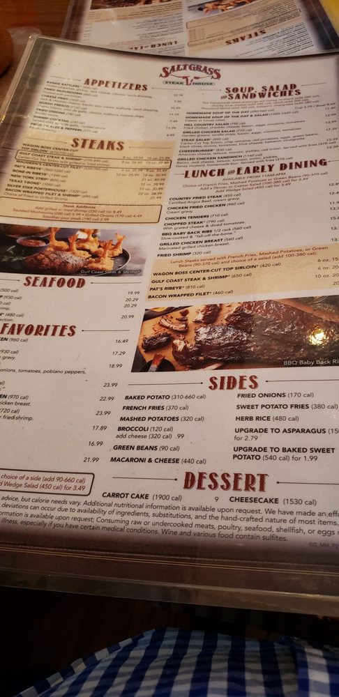 Welcome to Saltgrass Steak House - State Hwy 121, a premier destination for steak enthusiasts and seafood lovers alike, nestled at 801 State Hwy 121 in Lewisville, TX. This casual dining spot effortlessly combines an inviting atmosphere with an impressive menu that includes tantalizing dishes like their Chicken Fried Steak and Blackened Redfish. Reviewers rave about the wedge salad and the indulgent smokehouse mac and cheese, showcasing the restaurant's commitment to flavor and quality.