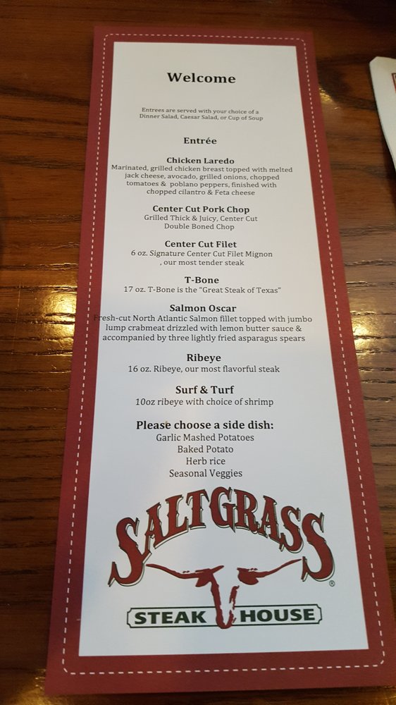 With options catering to a diverse palate, including keto and vegetarian selections, Saltgrass stands out as a family-friendly venue, perfect for lunch, dinner, or dessert. The attentive service from staff members like Alexis and Trina enhances the dining experience, ensuring that guests feel valued. Whether you're enjoying the outdoor seating or taking advantage of the happy hour specials, Saltgrass Steak House promises a fulfilling culinary adventure!